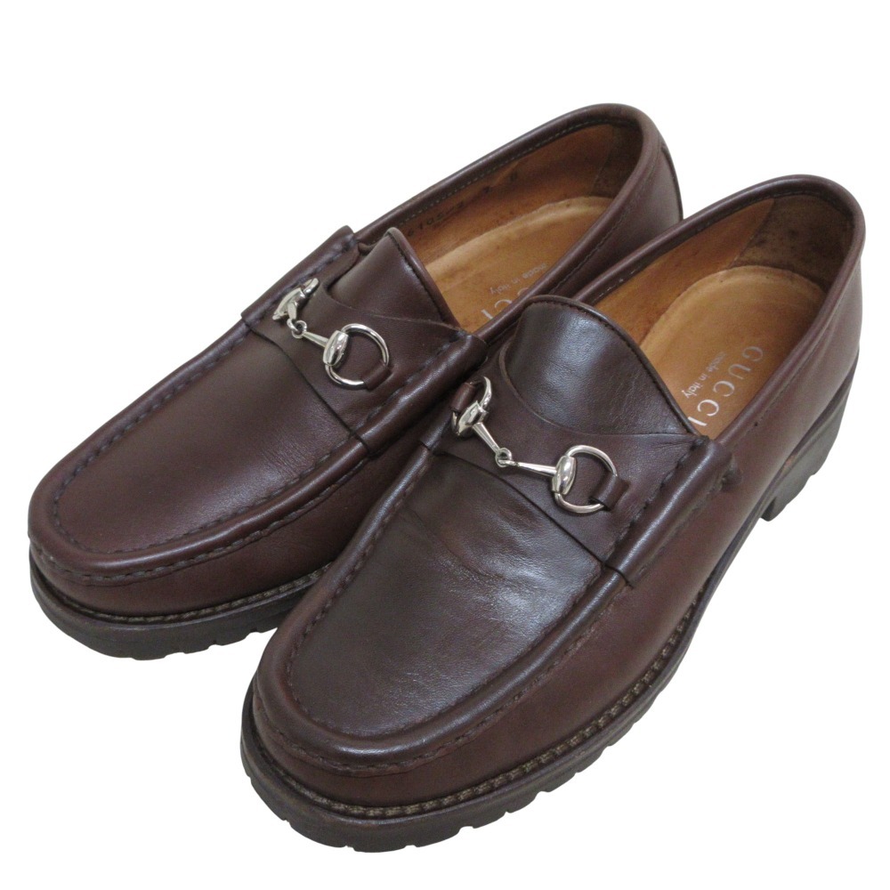 > 良品 GUCCI グッチ レザー ビットローファー シューズ サイズ7B 24.0cm相当 ブラウン