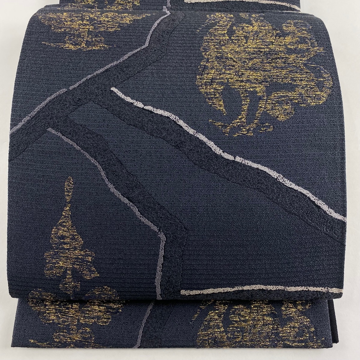 - 袋帯 秀品 鳥 幾何学 箔 紺色 六通 正絹 【中古】