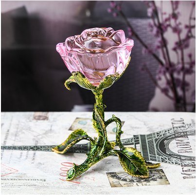 【限定品】超美品水晶のピンクバラ置物1203-YS-97-3D