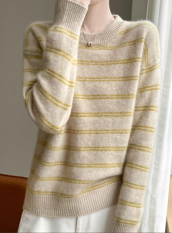 > 新入荷*上品 配色 セーター レディース ボーダー柄 長袖 トップス カジュアル 柔らかい ゆったり 通勤 通学 女性用 ニットトップス*黄