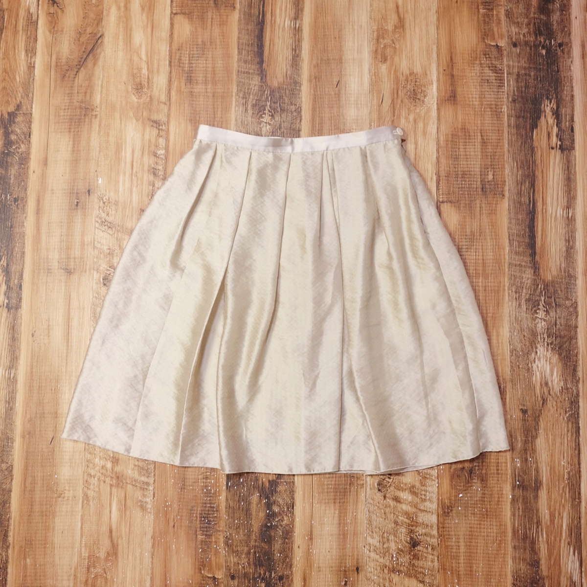 > 美品 ポールスチュアート Paul Stuart タックフレアスカート レディース オフィス セレモニー きれいめ 8 Mサイズ ベージュ LF22