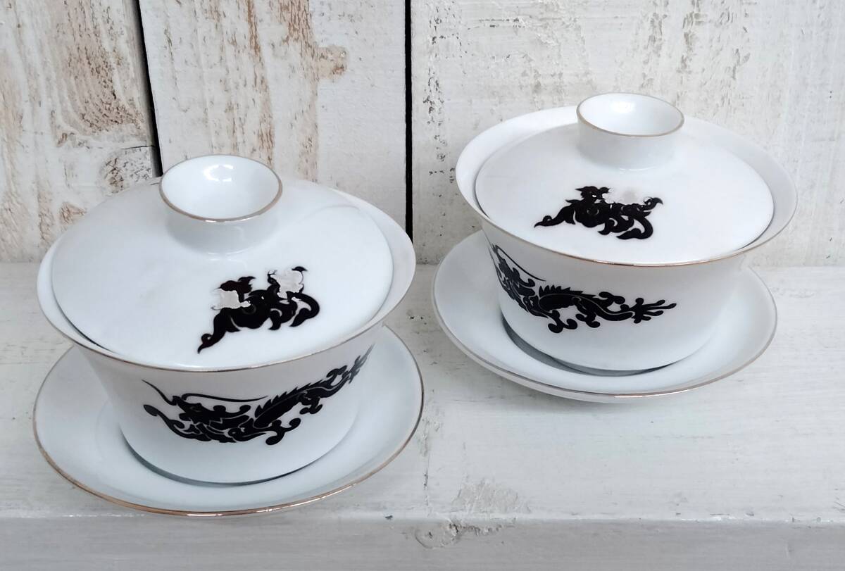 - *中国茶器 茶道具 *JINGYAYISHUCHAJU *茶碗 蓋 器 受け皿 *2点まとめ 2客 *銘入り *箱付き