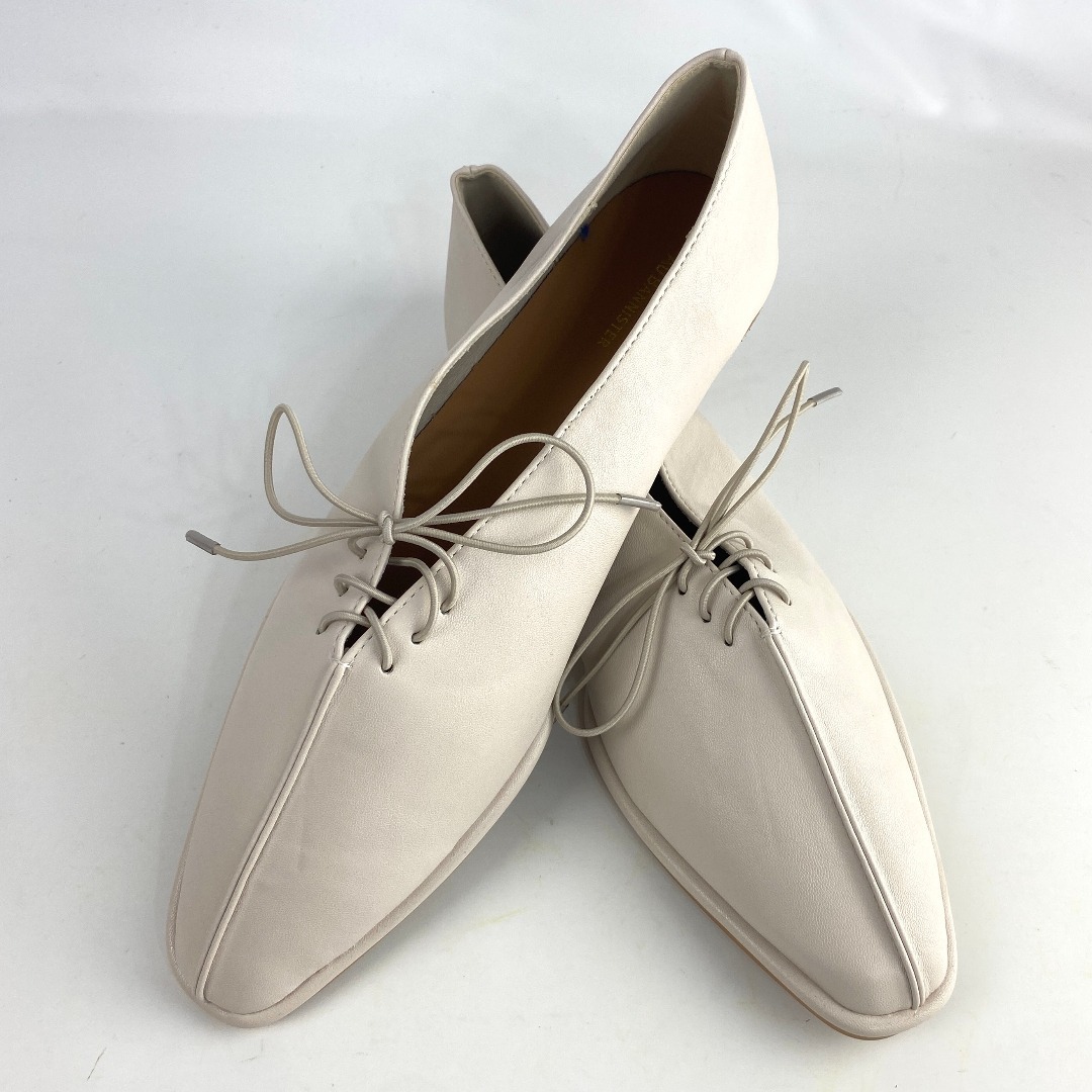 - 新品 Au BANNISTER レースアップ シューズ アイボリー 38 スクエアトゥ フラットヒール ゴムシューレース 合成皮革 パンプス代わり モダン