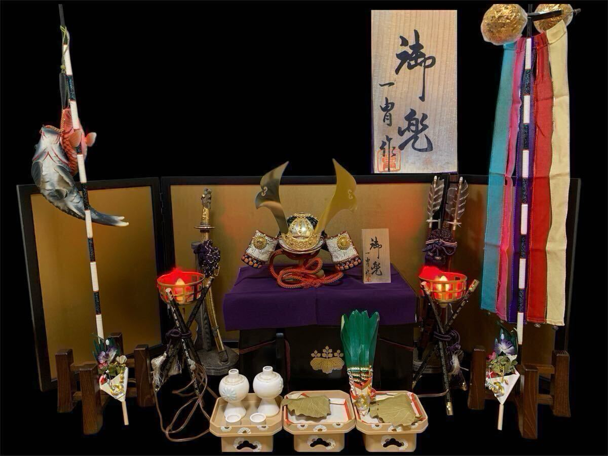 - ★ 一冑作★真多呂人形 五月人形 兜飾り 端午の節句 金屏風 武具 置物 箱付 中古 現状 まとめ★734flok★ee392
