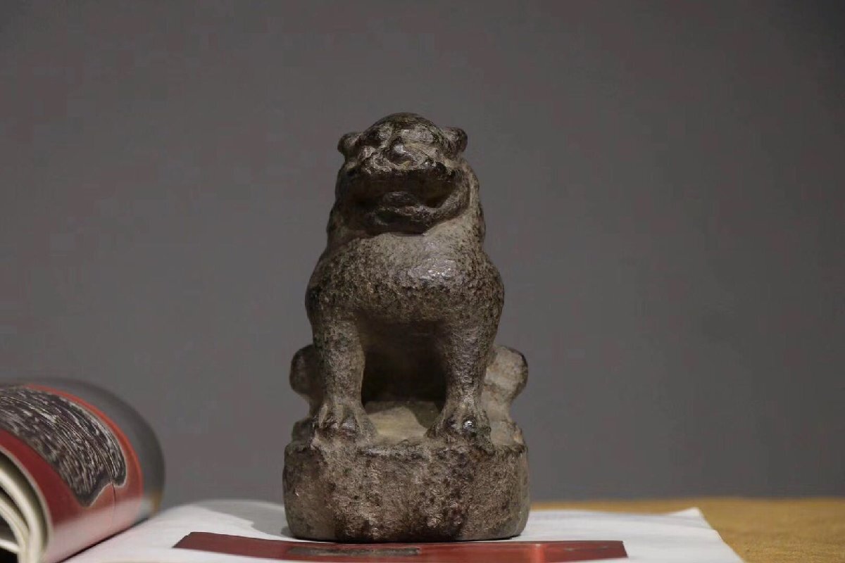 - 天然青石 青石石像 唐風 獅子 ライオン匹 盆栽 園芸 文房具 書道具 観賞 置物