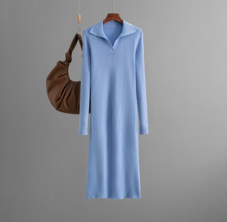 - 346 ワンピースladiesレディース ◇ 秋冬 上質 ◇ 暖かい 厚手 ニット素材 ブルー