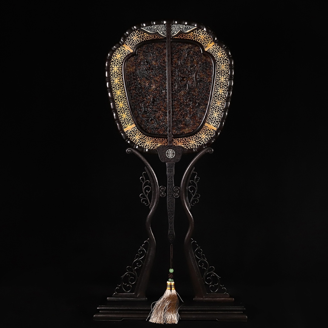 - 清時代 古黑檀木彫 黑檀木嵌 沈香 空彫 屏風 擺件 文案置物 古玩家具 極細工 古賞物 古美味 東洋彫刻 時代物 骨董 中国古美術