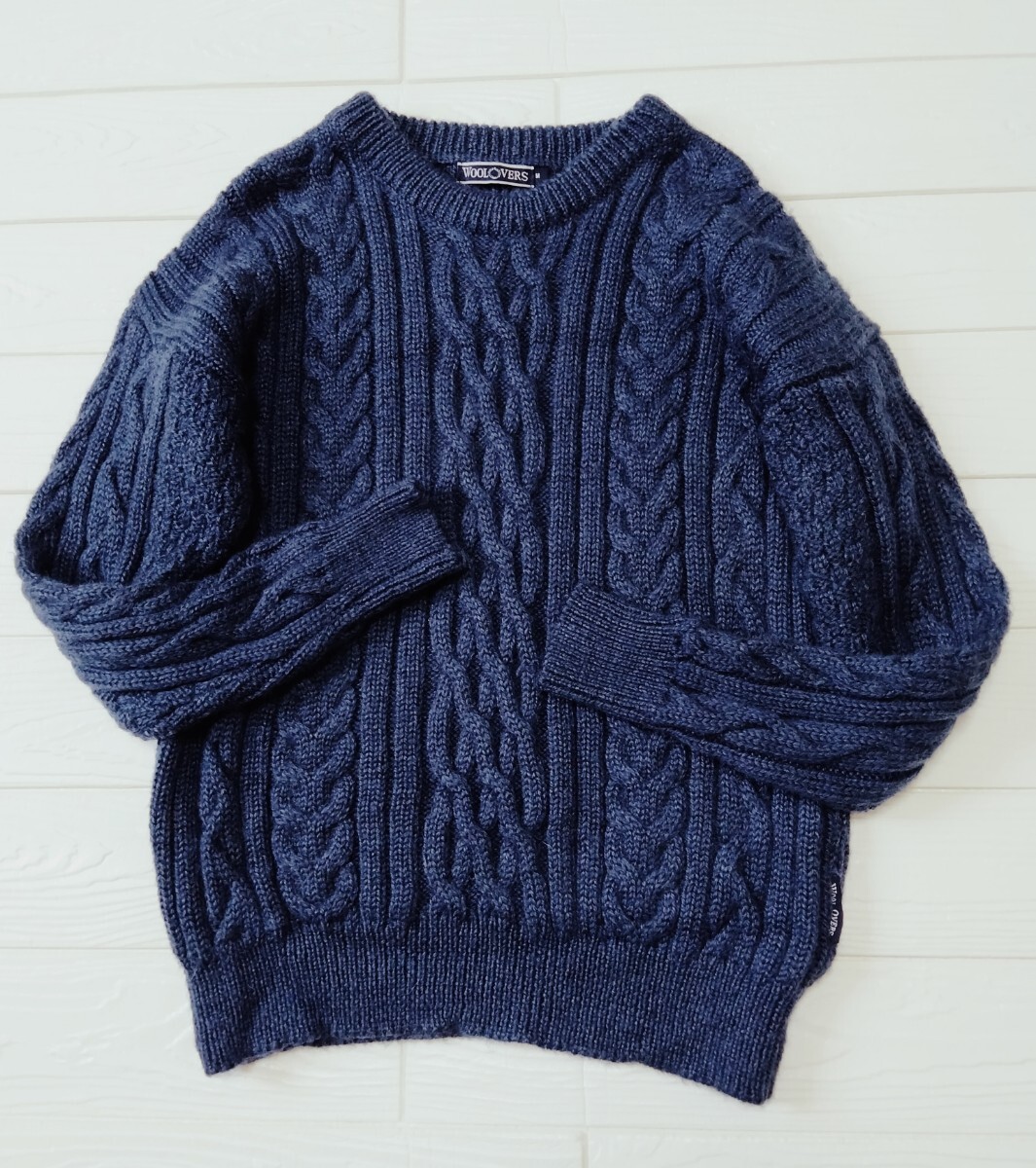 - WOOLOVERS*ピュアウール100% アランニット*フィッシャーマン*メンズM*ネイビーブルー*手洗い可*肉厚