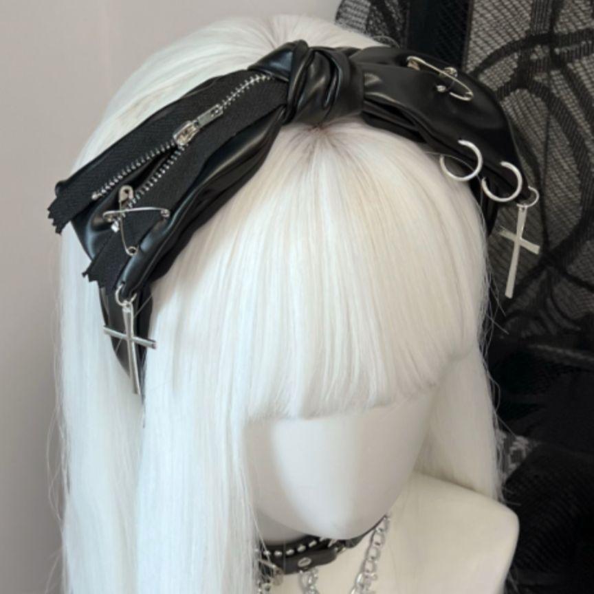 - リボン地雷系 ヘッドバンド カチューシャ 十字架地雷系・量産型・Y2K・ゴスロリ・ストリート系にぴったりのヘッドバンドです。