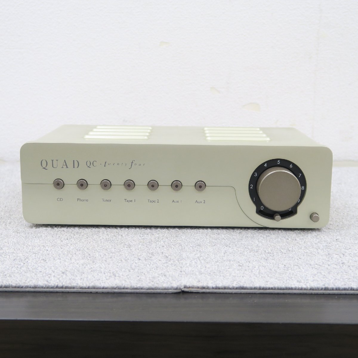 メーカー型番:QUAD QC-twenty four状態ランク:Bランク動作:確認済み付属品:電源ケーブル・アースケーブル元箱:無し整備歴:不明オーナー歴:不明当社保証:15日メーカー保証:無しその他:ロッキーインターナショナル正規輸入品使用に伴う擦れ、小傷、背面の端子を中心に汚れとくすみが見られます。PHONO入力にオプションボードはありません。QUAD QC-24 製品仕様外形寸法 幅300mm 高さ88mm 奥行125mm重量 3.4kg※掲載している仕様は万全を保証するものではありません。正確な情報は各メーカーや代理店にご確認ください。