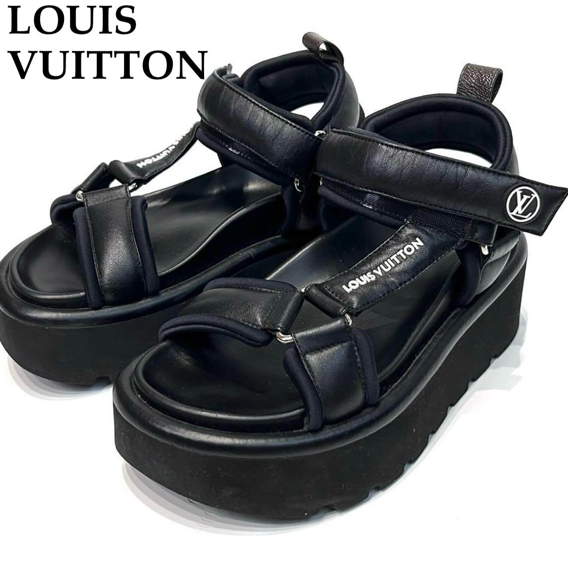 > 極美品 LOUIS VUITTON ルイヴィトン プールピローライン サンダル 厚底 シューズ 靴 35 22.5cm ブラック 黒 レディース