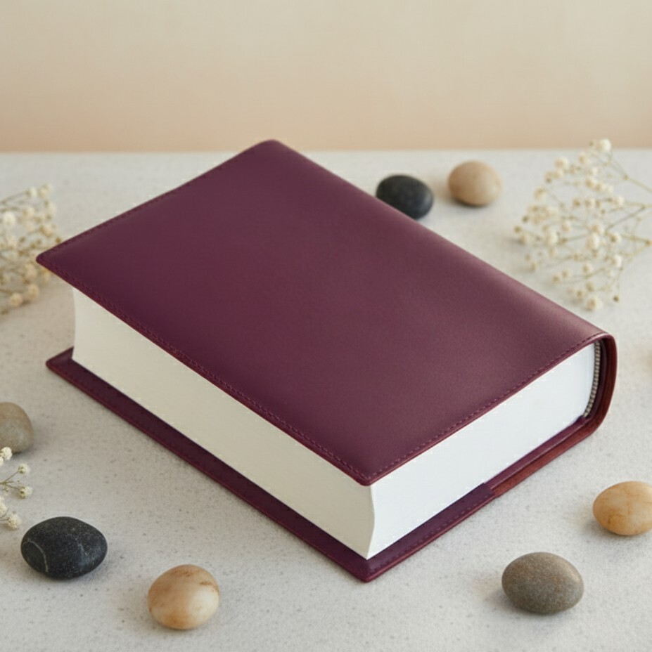 - 送料込み★かばん屋さんの本革レザー聖書用ブックカバー★中型 聖書協会共同訳聖書(旧約聖書続編付き・引照注つき)★バーガンディ ワイン