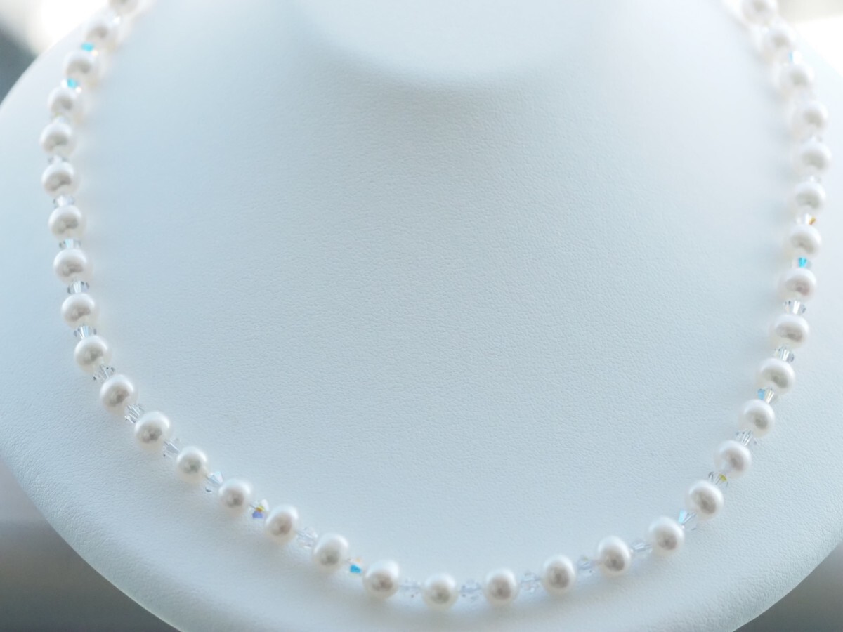 > SWAROVSKI&PEARL スワロフスキー 素敵な天然パールネックレスシェルフラワーシルバー925ネックレス