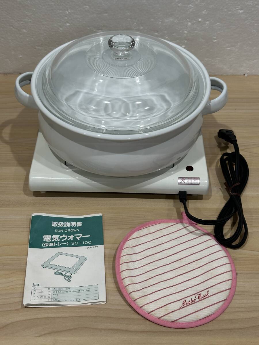 - A081_ 動作確認済み 未使用 長期保管品 ホーロー鍋+保温トレー セット SC-100 電気ウォーマー SUN CROWN 鍋サイズ 径21×高さ9cm