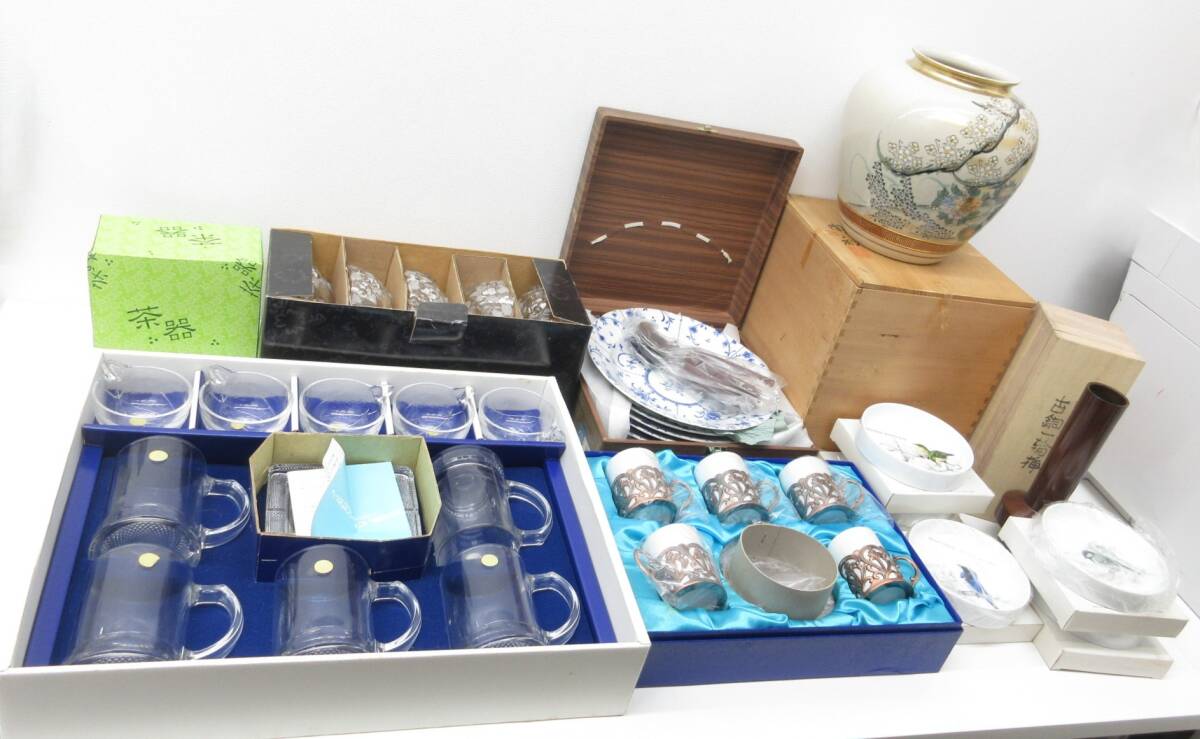 > 食器祭 焼き物 おまとめセット 九谷焼 花瓶 陶和 保谷クリスタル バードウォッチング 古銅一輪差 ティーカップ ソーサー カレー皿 保管品