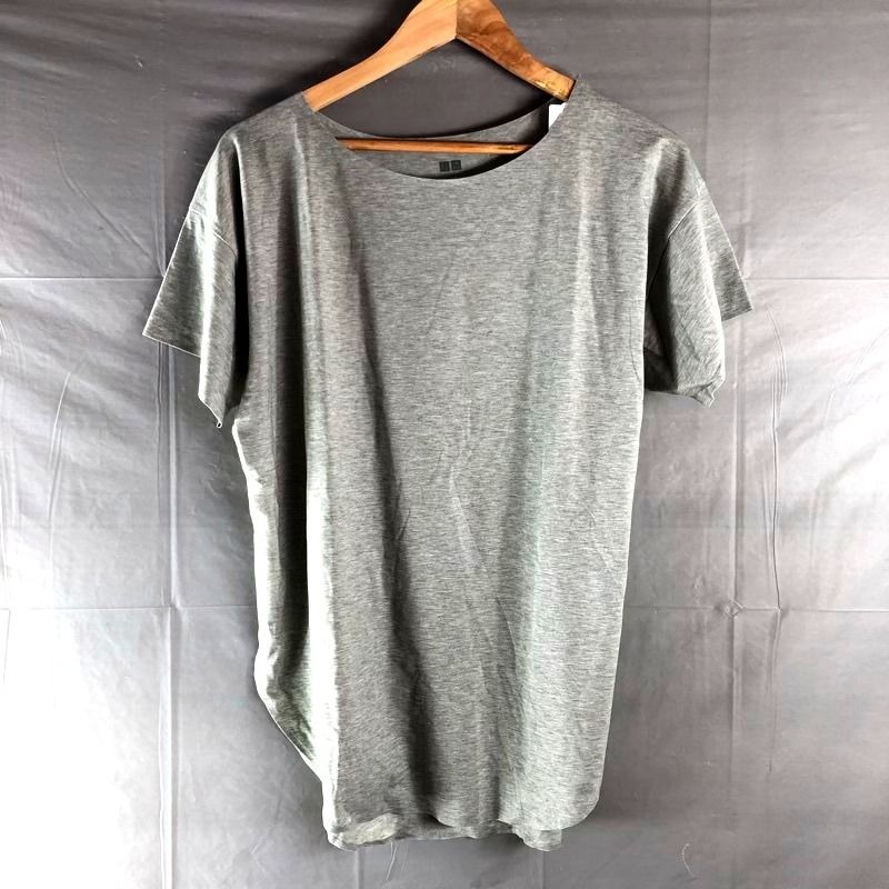 - ユニクロ UNIQLO カットソータグ付き 半袖 エアリズム シームレスボートネックロングT グレー Lサイズ 2025083100186