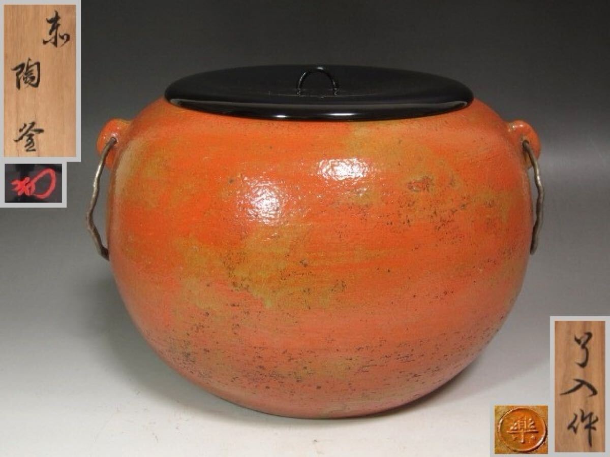 - ★ 九代 楽吉左衛門 了入 赤陶釜 裏千家 十四代 淡々斎の花押がございます★x442