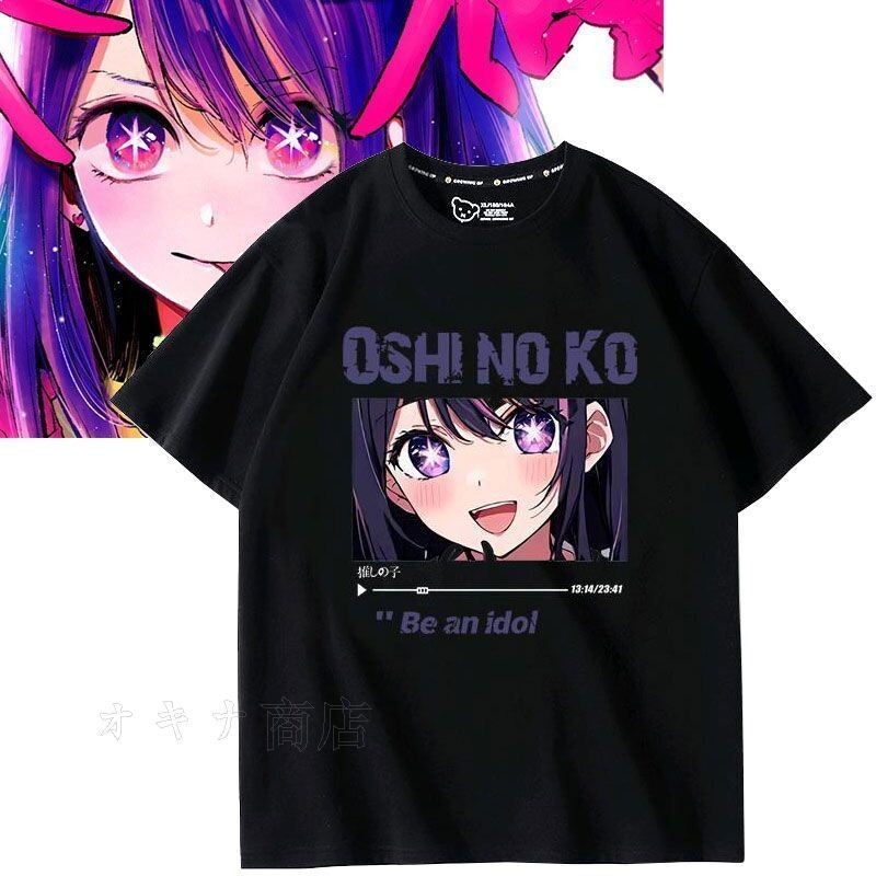 > 推しの子 Tシャツ 周辺 半袖シャツ 星野愛 ブラック シャツ 体型カバー ゆったり キャラクター プリント柄 背面無地 人気キャラ