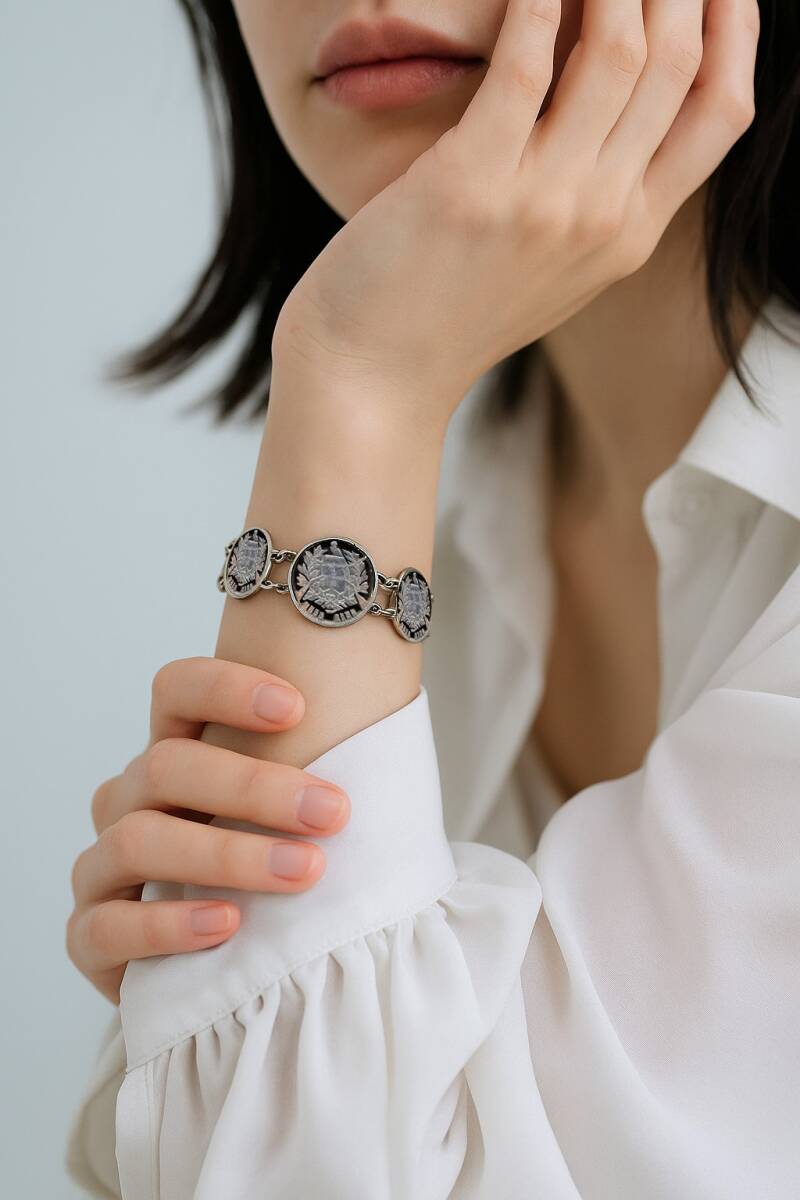 > 1821 Libertad Guatemala グアテマラ アンティーク コイン使用 ヴィンテージ シルバー ブレスレット レトロ チャーム Y13-I