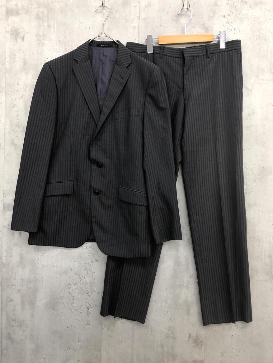 > MONSIEUR NICOLE ムッシュニコル ビジネス ストライプ 2釦 セットアップ ジャケット パンツ スーツ size50/チャコール ■■◎
