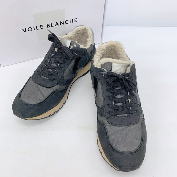 > VOILE BLANCHE ボイル ブランシェ ボア スニーカー シューズ ローカット レザー 箱付き カジュアル メンズ サイズ43 ブラック 靴 DF16643■