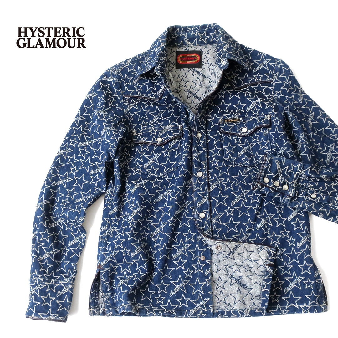 - ヒステリックグラマー HYSTERICS 星柄 デニムウエスタン ライトアウター スター×ロゴ総柄 インディゴ (F)