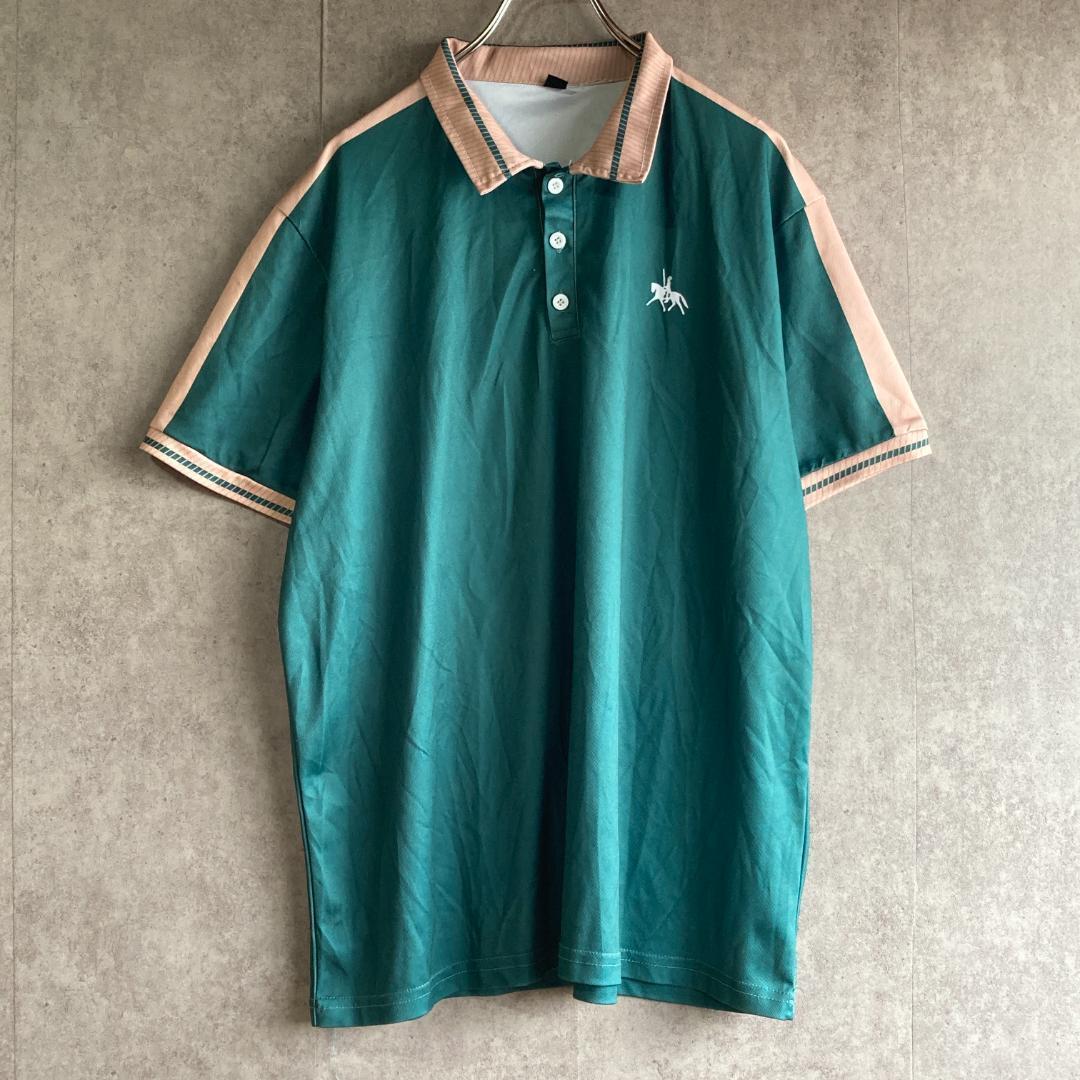 - 配色カラー半袖ポロシャツ(XL)メンズ*ワンポイントロゴプリント*ゴルフ*光沢感