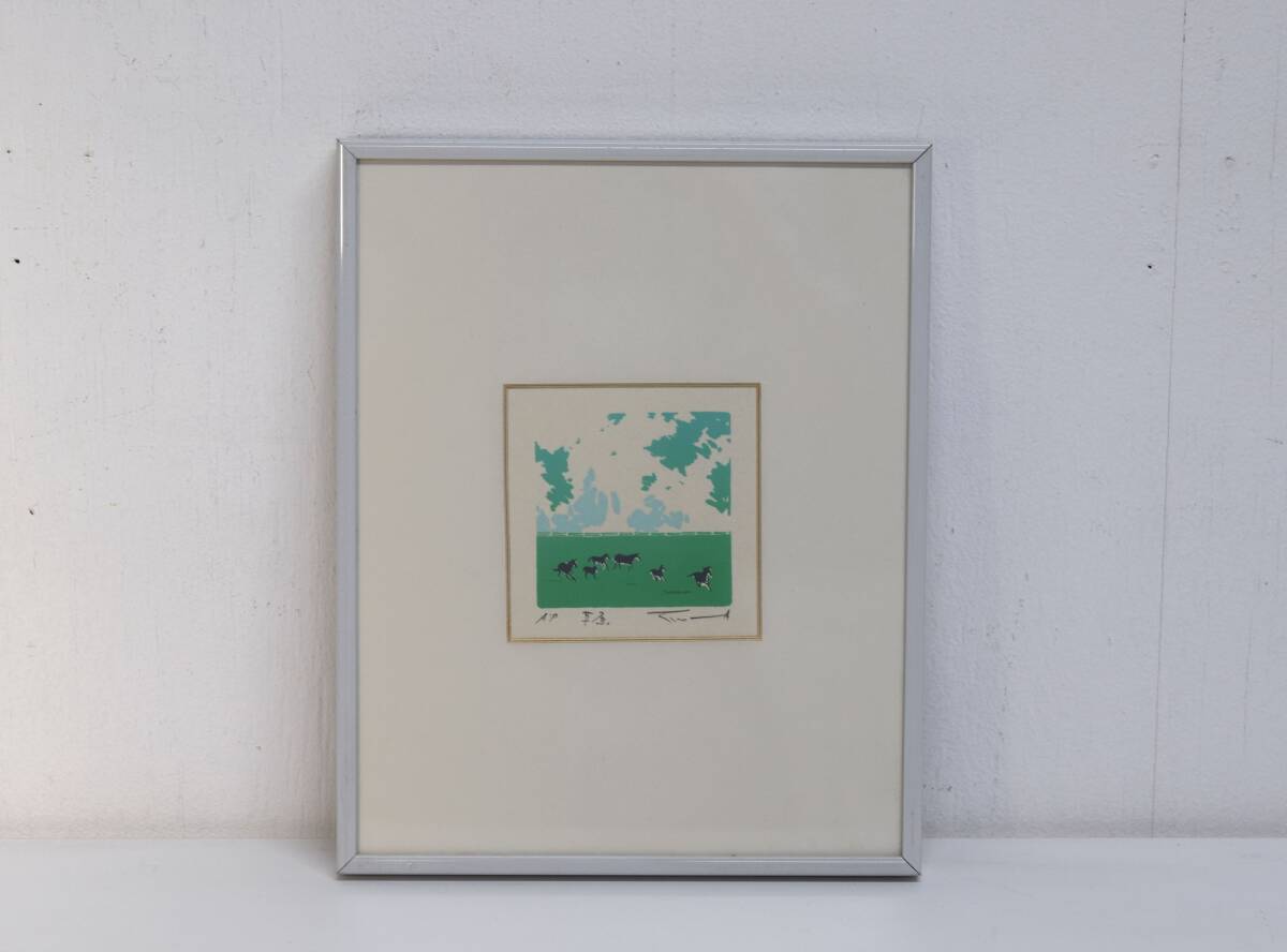 - ■ シルクスクリーン 本間武男 「草原」AP 草原を駆ける馬 風景画 ■