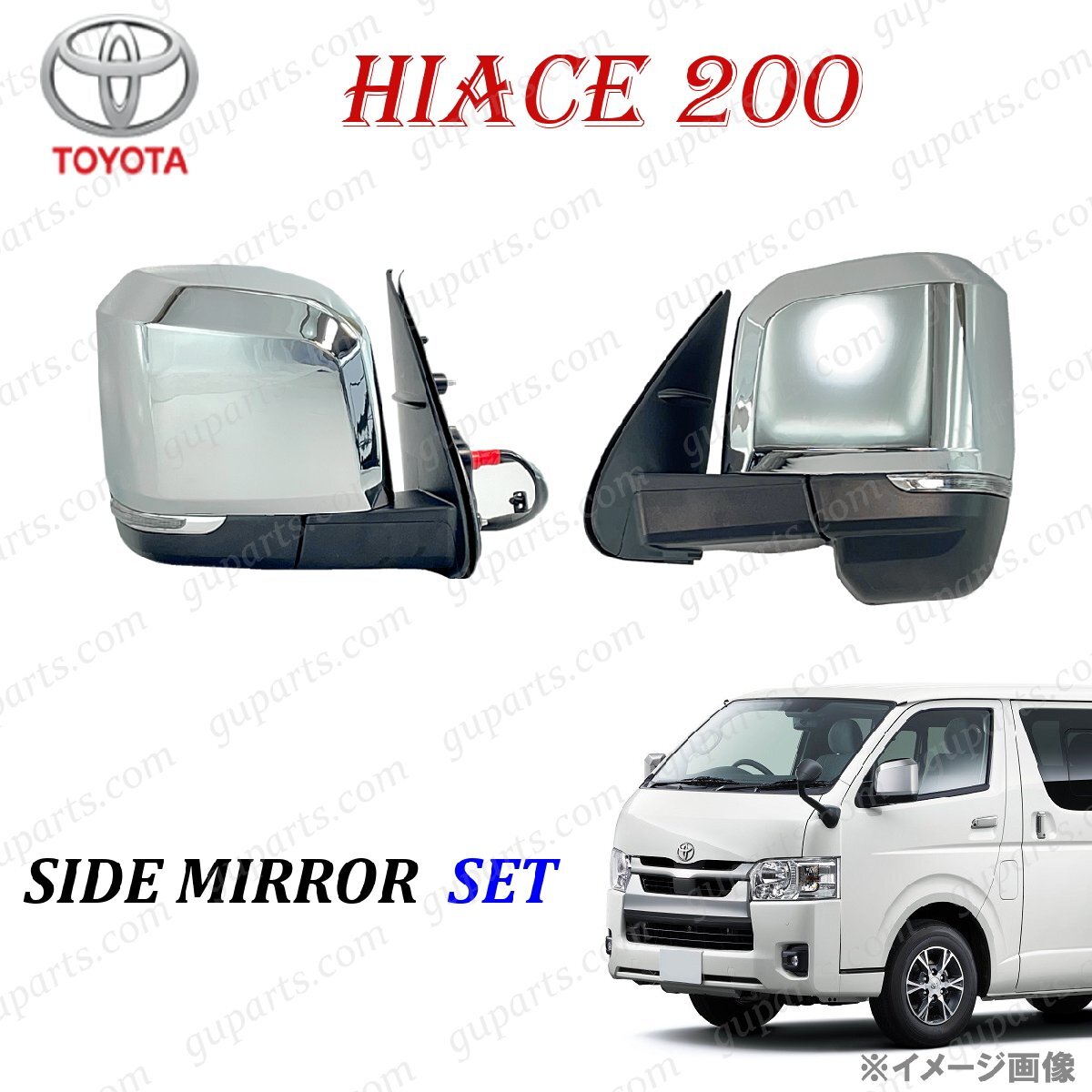 - ハイエース 200系 6型 ルック ドア ミラー 左右 セット アンダーミラー 付 LED ウインカー クローム メッキ タイプ 電動格納