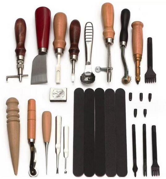 - 大人気なんと18点セット!! レザークラフト ツール キット 工具 DIY 初心者 手縫い ハンドメイド 革 皮 道具 プレゼント