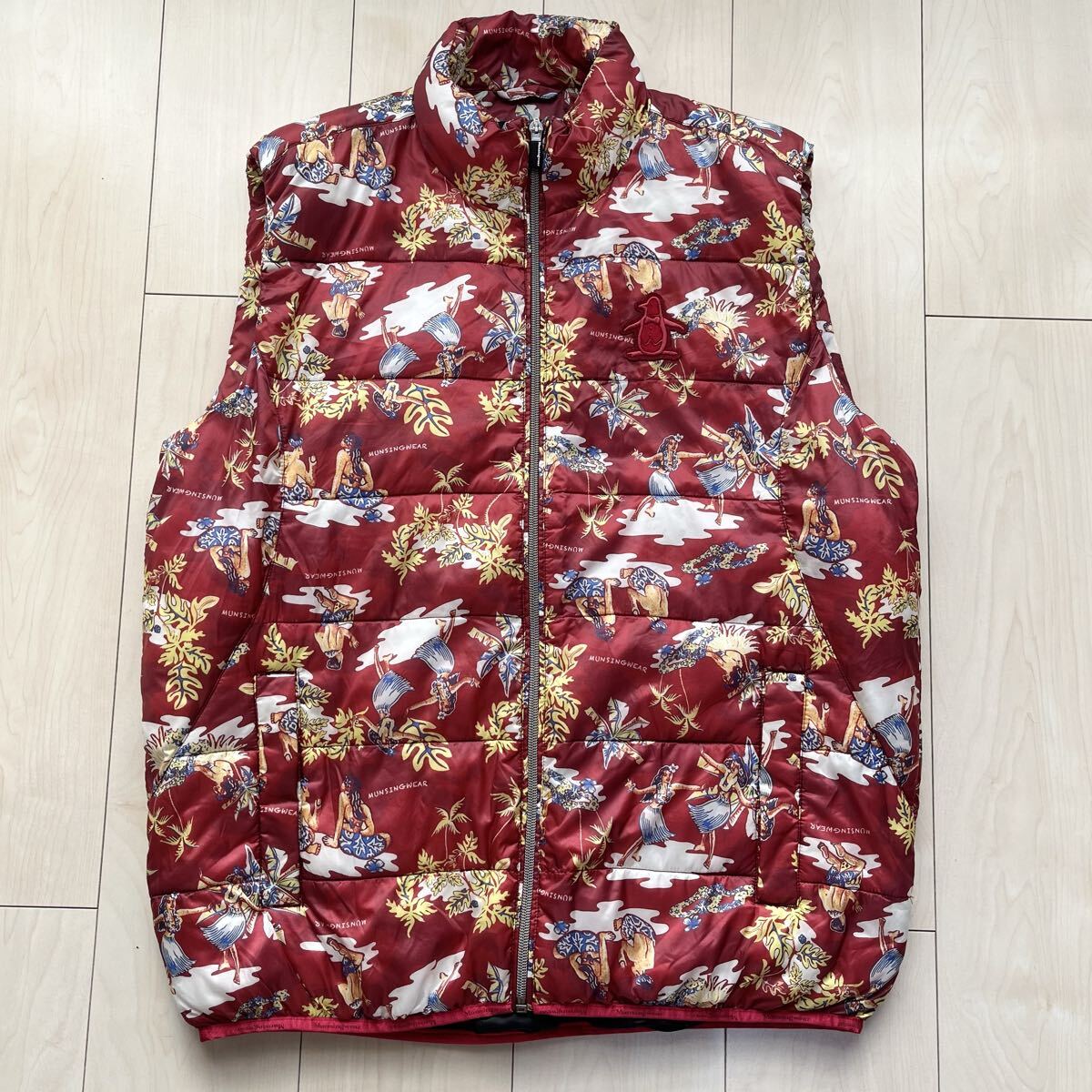 - Munsingwear マンシングウェア ゴルフ 中綿ベスト アロハ柄 ハワイアン ワッペン 赤 LL