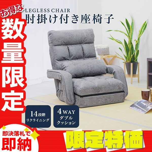- 【限定セール】座椅子 おしゃれ 肘掛付き レザー 腰痛対策 カバー付き コンパクト リクライニング ソファーベッド 日本製ギア ハイバック