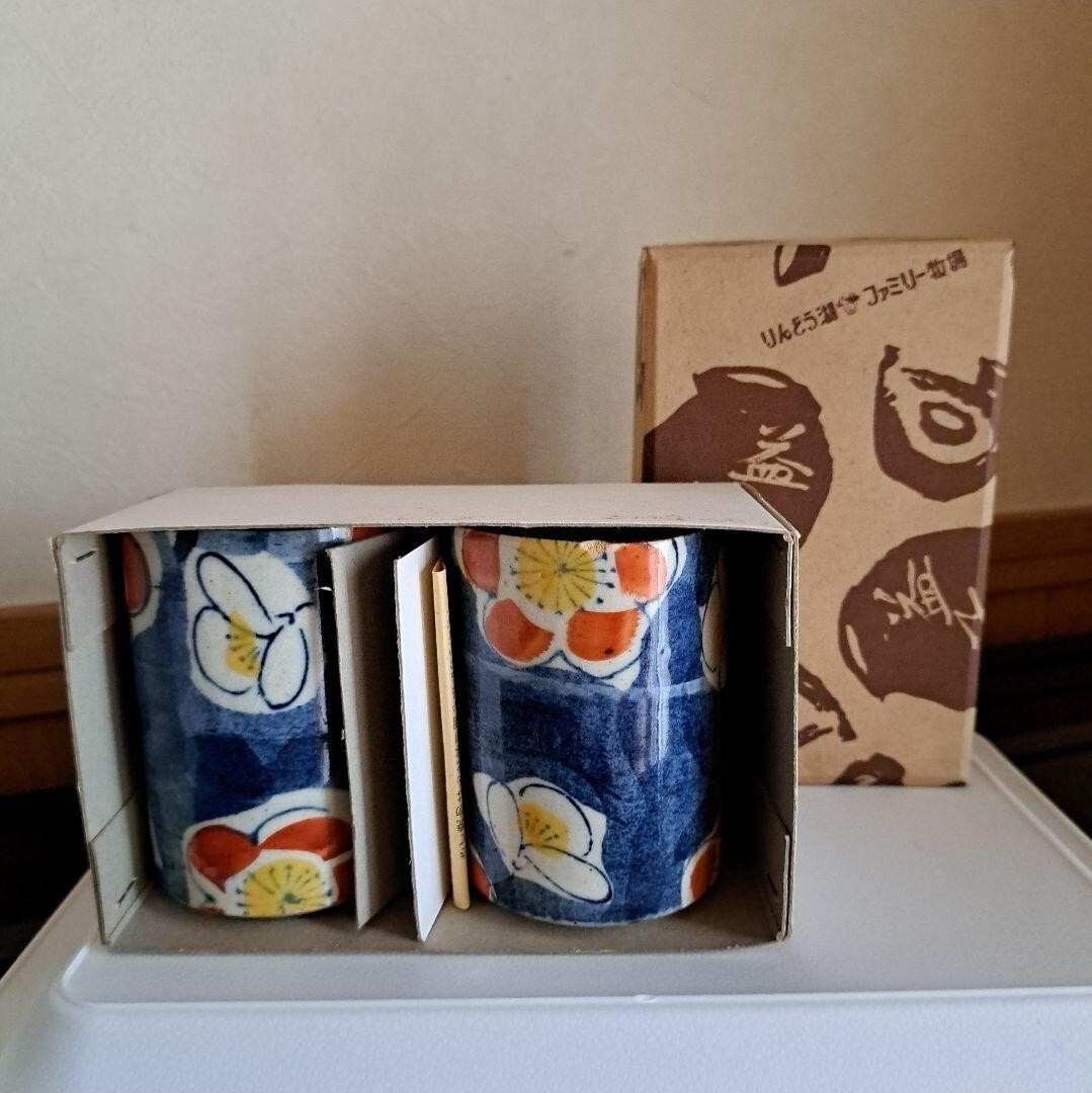 - 花柄 湯飲み 2個セット 陶器製 益子焼 りんどう湖ファミリーパーク