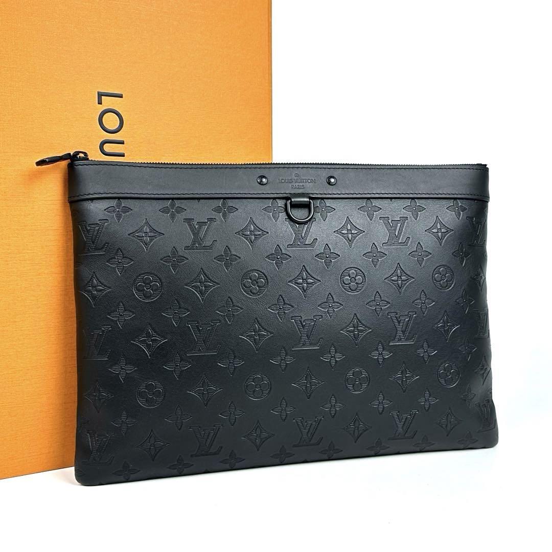 - 極美品 LOUIS VUITTON ルイヴィトン モノグラム シャドウ ポシェットディスカバリー セカンドバッグ クラッチバッグ M62903 レザー 黒 箱