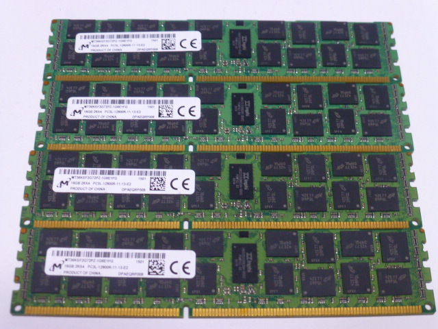 > メモリ サーバーパソコン用 低電圧 1.35V Micron PC3L-12800R(DDR3L-1600R) ECC Registered 16GBx4枚 合計64GB 起動確認済みです⑤
