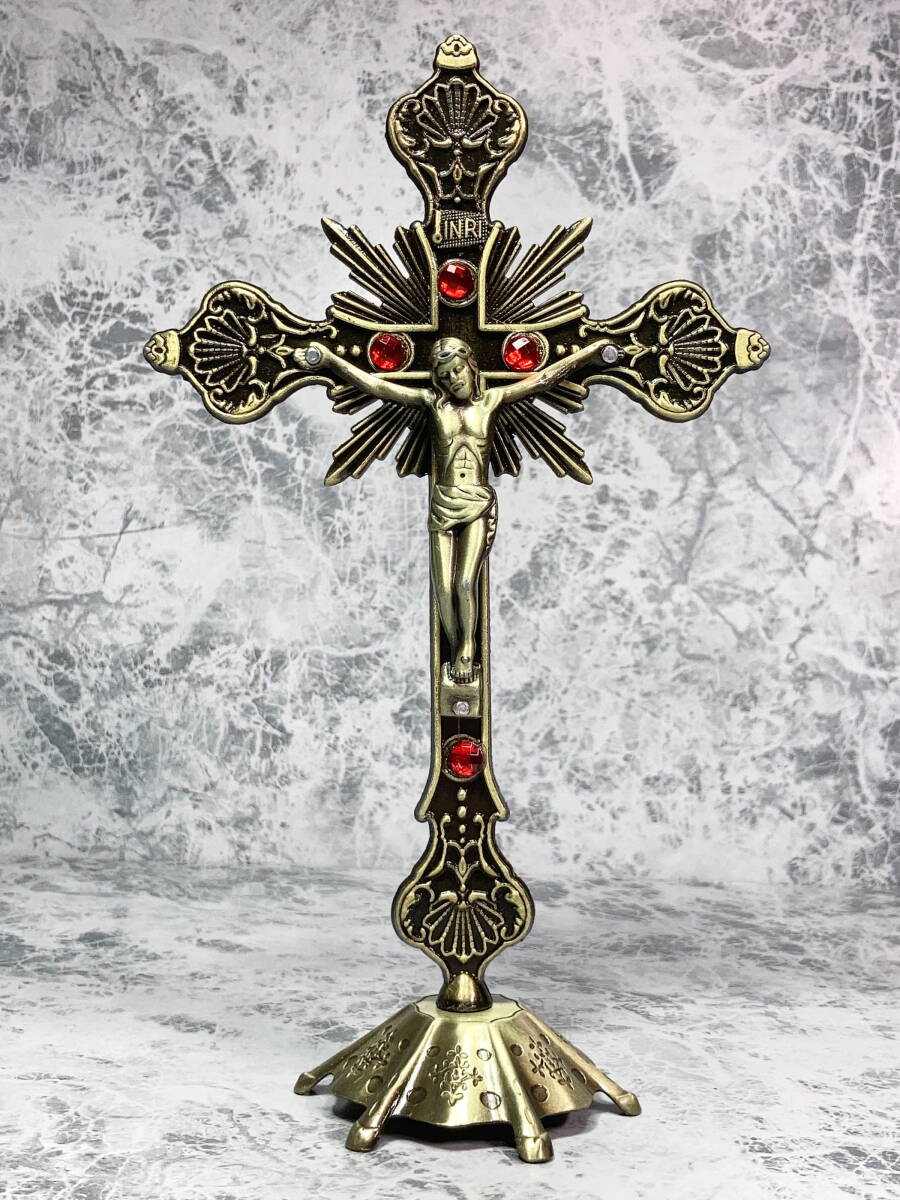 - ★送料無料★「卓上 十字架/クロス/ロザリオ イエス・キリスト ブロンズ」 tface-g 【タグ:アクセサリー】1