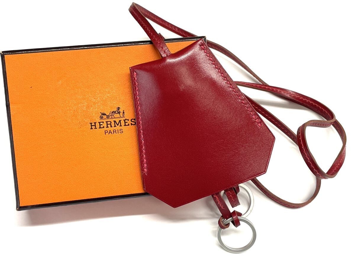 - 【J695】正規品 極上美品 HERMES エルメス クロシェット キーリング ネックレス レザー 革 レッド/赤 D刻印 本物保証 元箱付き
