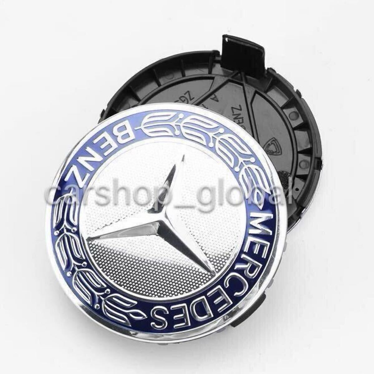 - メルセデス ベンツ ホイールセンターキャップ ブルー×シルバー CLA/W176/C117/W222/W213/W205/C205/W463/R231/W221/AMG ハブ 4個