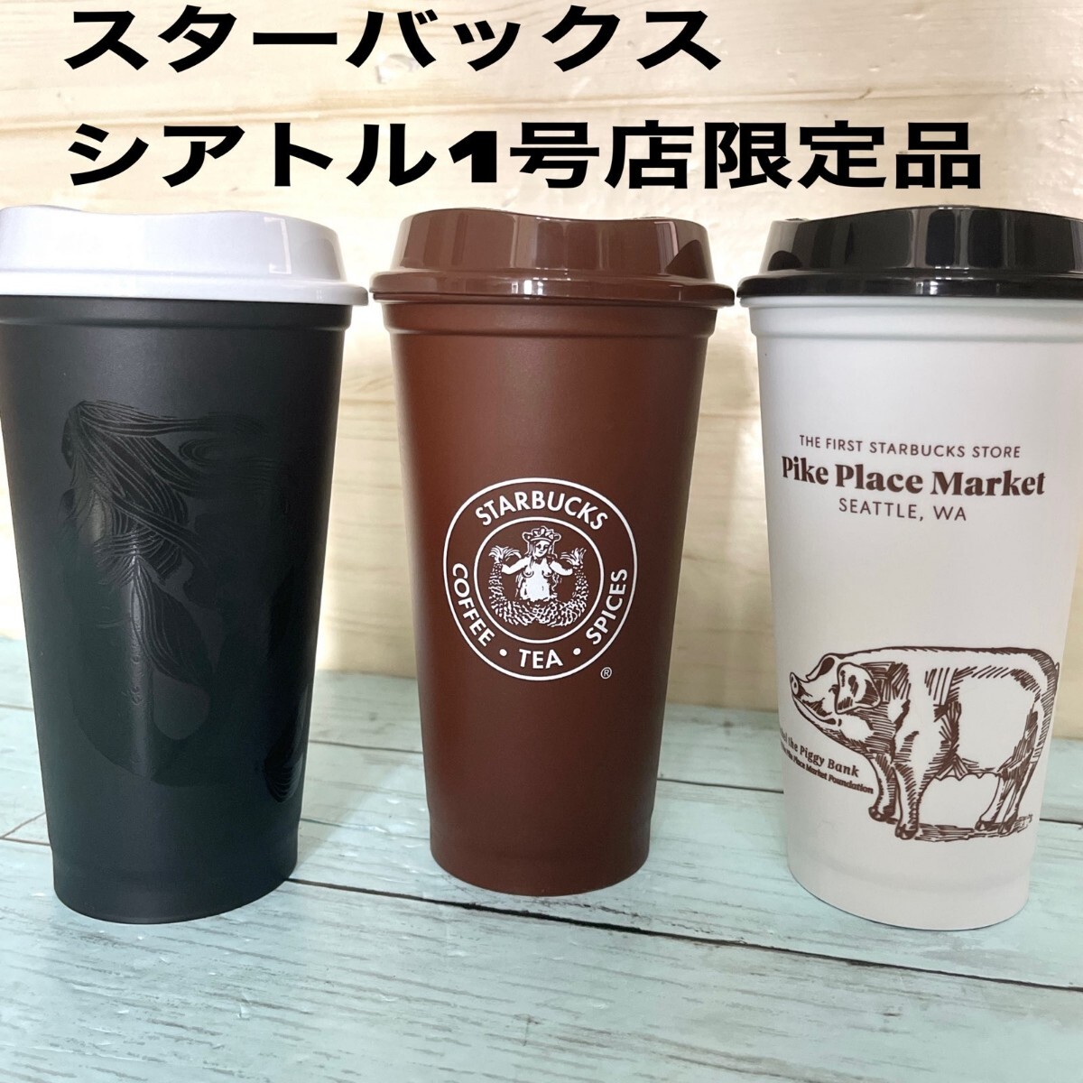 > 3個セット 激レア リユーザブル カップSTARBUCKS スターバックス【アメリカシアトル1号店限定 プラスチック タンブラー ホットゴール 新品