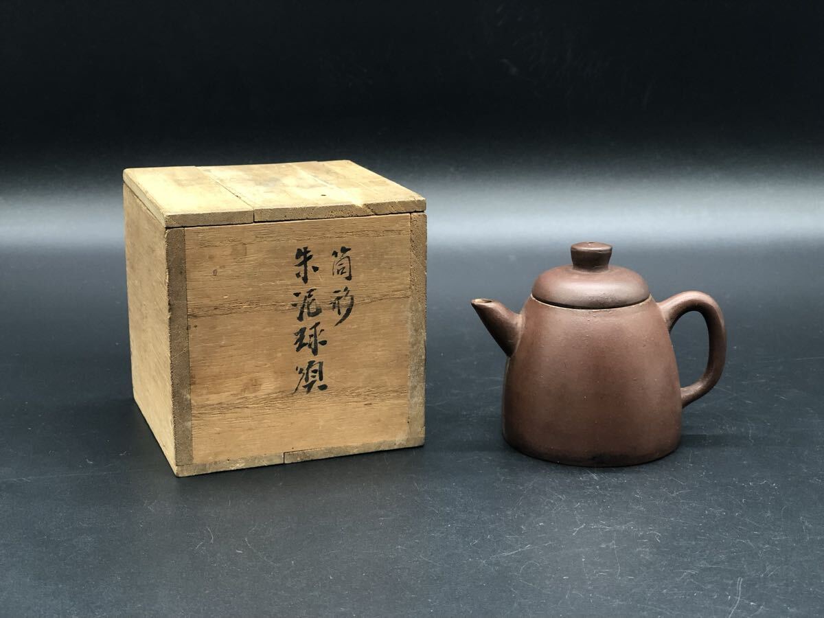 - 煎茶道具 唐物 中国 筒形 急須 朱泥 紫砂 箱付 茶道具 在銘