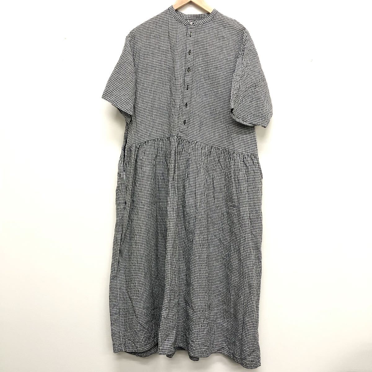 - 【nest Robe】ネストローブ★半袖ワンピース リネン ギンガムチェックワンピース ロング 01222-1212 サイズF 09