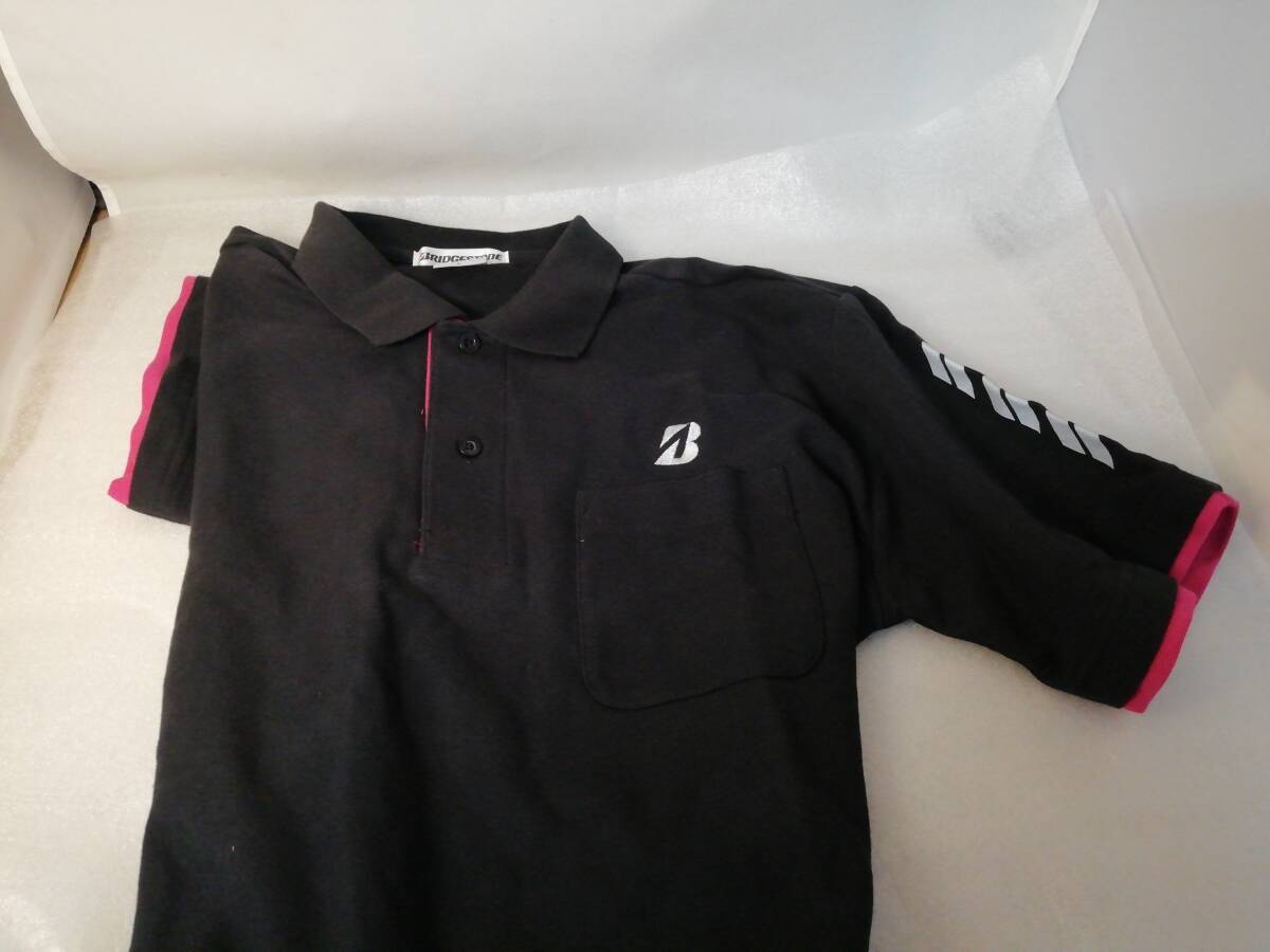 - ◆ブリヂストン紳士 綿 半袖ポロシャツ◆【 BRIDGESTONE★Lサイズ 黒×ピンクライン 】