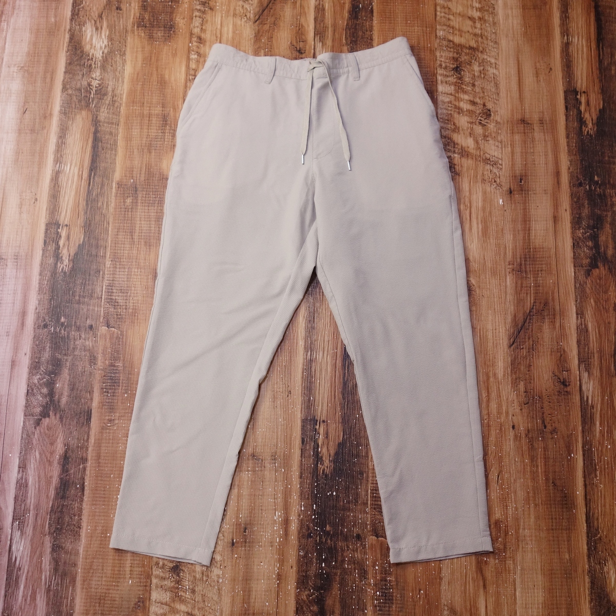 - 美品 シアサッカーイージーパンツ メンズ テーパード アンクル丈 春夏 Lサイズ ライトベージュ QJ10