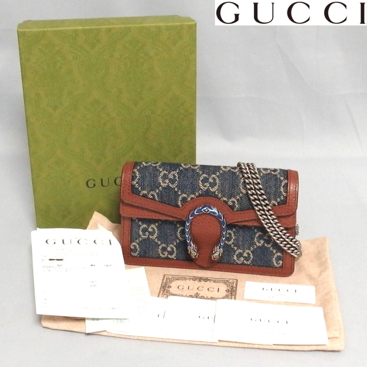 > 極美品★GUCCI Dionysus Super Mini Bag 476432 GG デニム チェーン ショルダーバッグ ポシェット ディオニュソス スーパー ミニ グッチ★