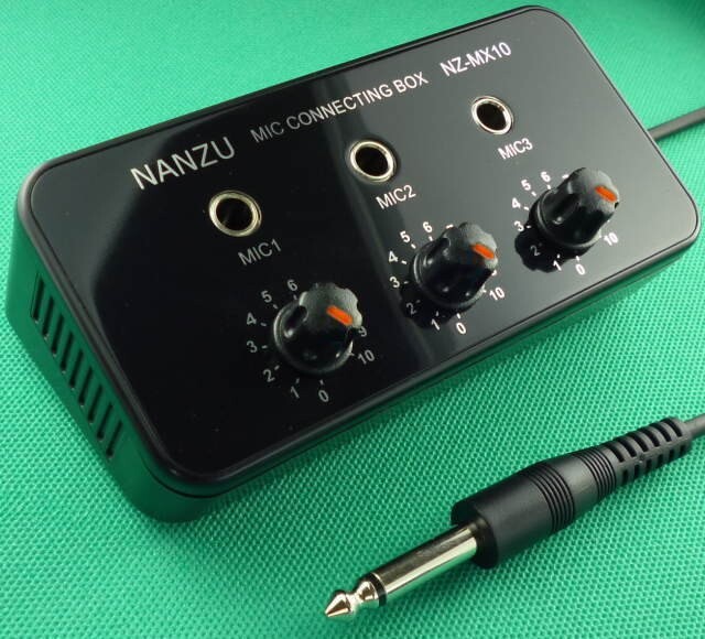 > 簡易マイクミキサー NZ-MX10 電源不要でマイク3本接続可能な小型ミキサー