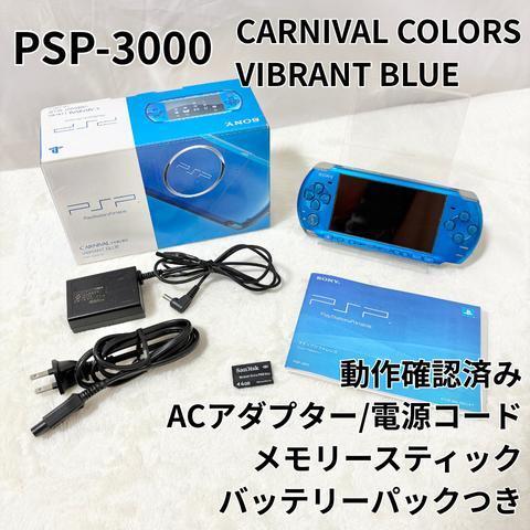 > 動作確認済 PSP 3000 バイブラントブルー 外箱 AC 説明書 バッテリー