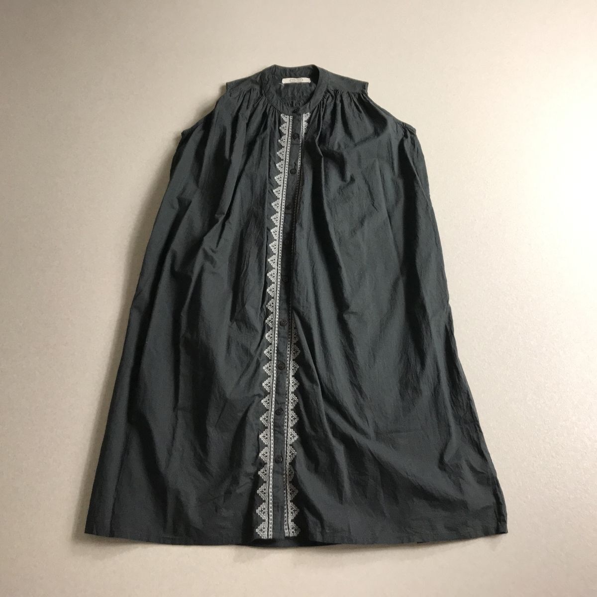 - □インド綿 刺繍 ノースリーブ ギャザー ワンピース