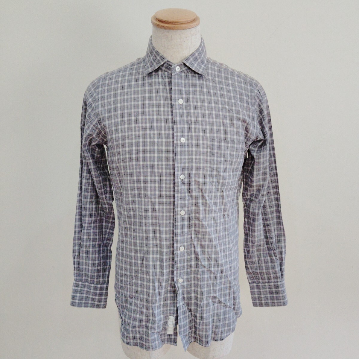 - 198/S/BEAUTY&YOUTH メンズ シャツ 長袖 チェック柄 綿100 日本製 替ボタン付 ライトグレー