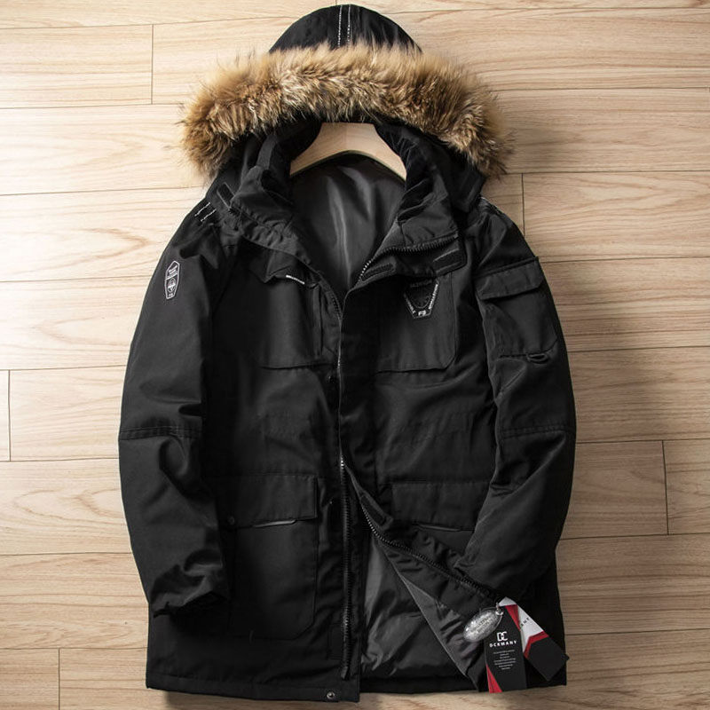- Y6529-XL ブラック 新品DCKMANY ダウンジャケット ミドル ファー付き 撥水 暖かい 防風 防寒 厚手 冬 ノーアイロン アウター メンズ