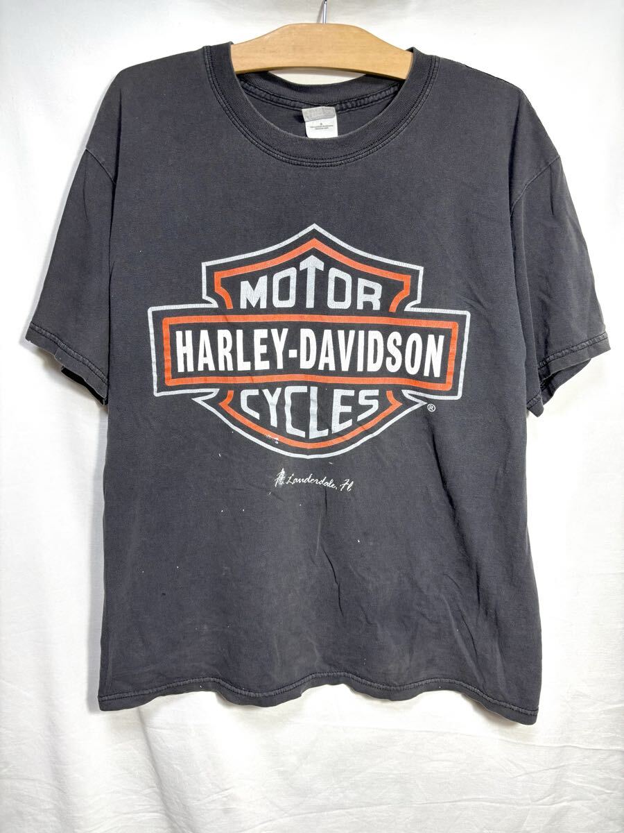 > ■ 00s ビンテージ グッドボロ フェード HARLEY DAVIDSON ハーレーダビッドソン ロゴ プリント Tシャツ 黒 バイカー Y2K ストリート ■